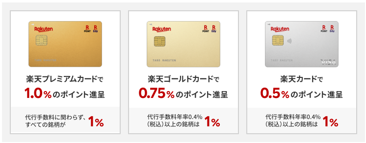 楽天証券のクレカ積立のポイント付与は以下の通りです。
